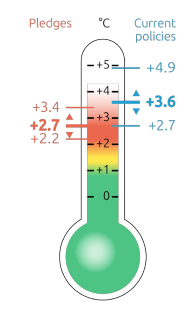 Let me back up. After 20 years of failing to come to meaningful agreement on how to tackle climate change, the world’s 196 countries are trying a different approach. They have each submitted a document that indicates, among other things, how much greenhouse gases they intend to emit between now and 2030. Add together all these INDCs (Intended Nationally Determined Contributions, in the ever-expanding lexicon of the negotiations) and you have a pretty good idea of where the planet is going, climate-wise. A few researchers have done just that, and concluded that, if every country sticks to its plan, we’ll hit 2.5C to 3C of warming by the end of the century (and continuing to rise past then).